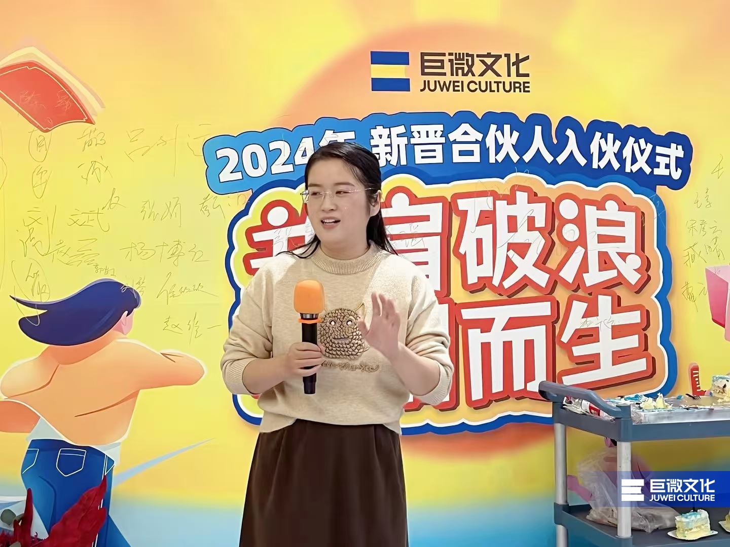 老合伙人也分享了对巨微文化的深刻感悟与无限热爱,为新合伙人、为巨微文化送上了真挚的祝福。