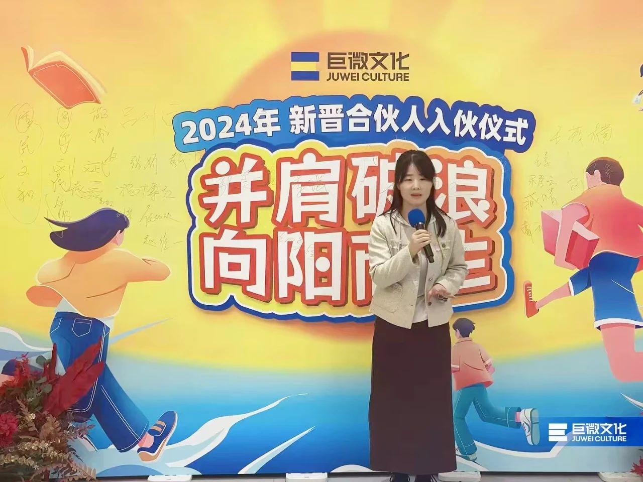 2024年11月2日,以“并肩破浪·向阳而生”为主题,巨微文化2024年新晋合伙人入伙仪式在陕西富平隆重举行。在这片充满历史记忆的土地上,巨微文化董事长吕升运、总经理杨博红以及公司新老合伙人、管理岗齐聚一堂,共同见证巨微奋进者成长路上的高光时刻,迎接巨微新生力量的汇入。
