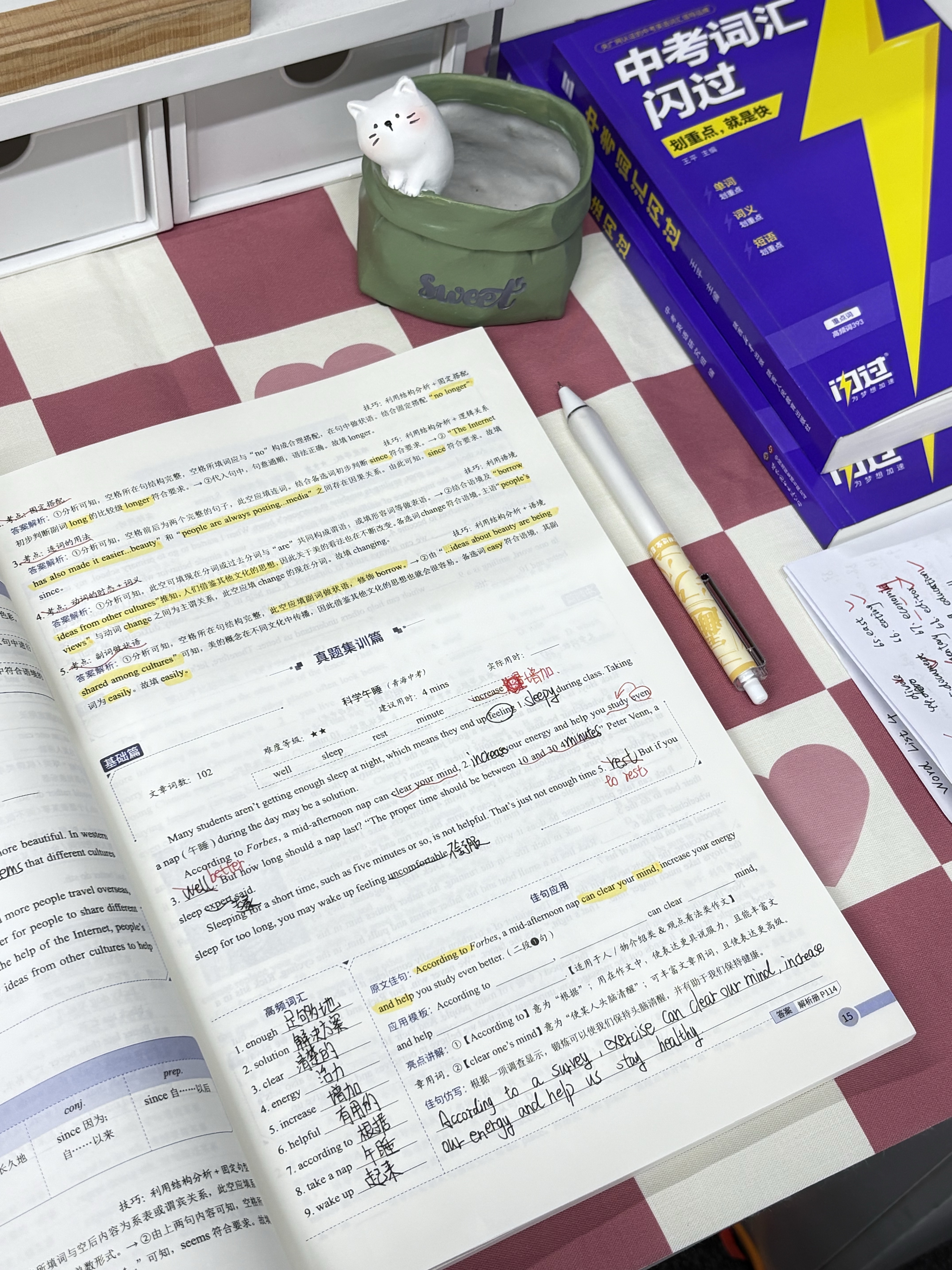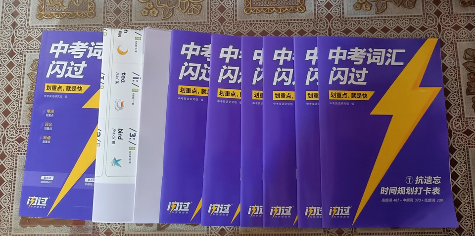 推荐《中考词汇闪过》:建议每天用20-30分钟,复盘已背高频词,背诵中频词和低频词,重点掌握词汇的常考短语和用法,搭配配套强化练习,将词汇运用到具体题目中。