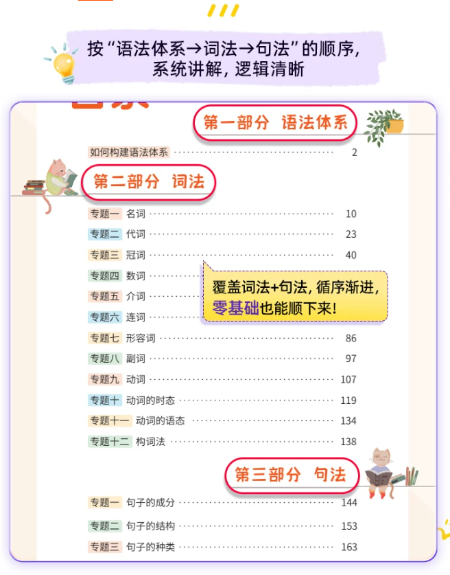 ☛语法基础薄弱、对语法学习有畏难情绪,需要易懂讲解与系统梳理的孩子。