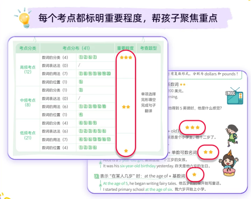 ❤考点重要程度标注清晰,孩子可以合理规划学习任务,提升衔接备考效率。