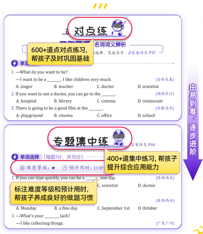 本书搭配专属配套练习册《闪过小初语法练习》,形成完整学习闭环,兼顾知识点吸收与实战应用: